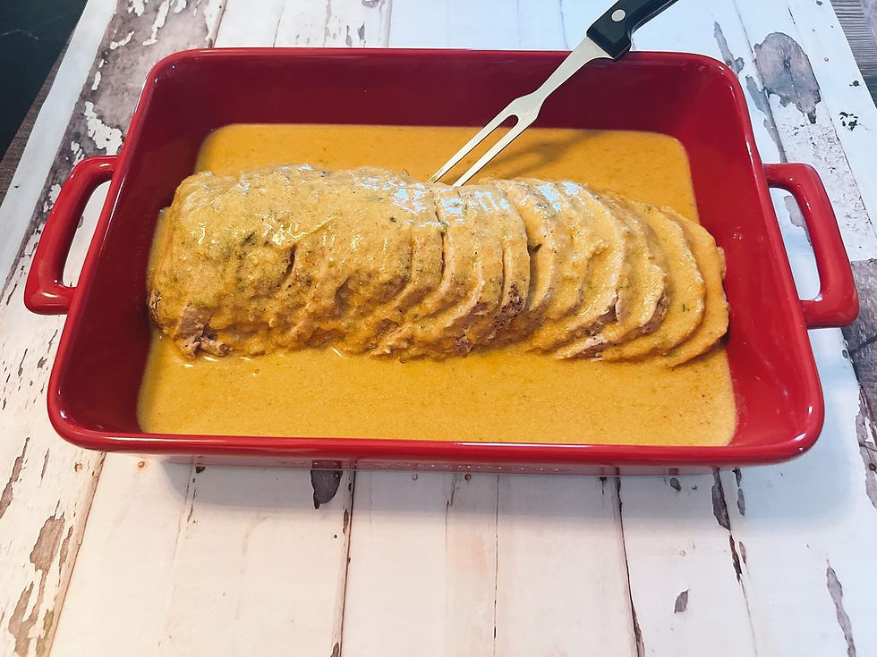 Make sure to warm up the milk well before adding to the pork loin to avoid shocking the hot meat with cold milk, which would cause it to toughen.